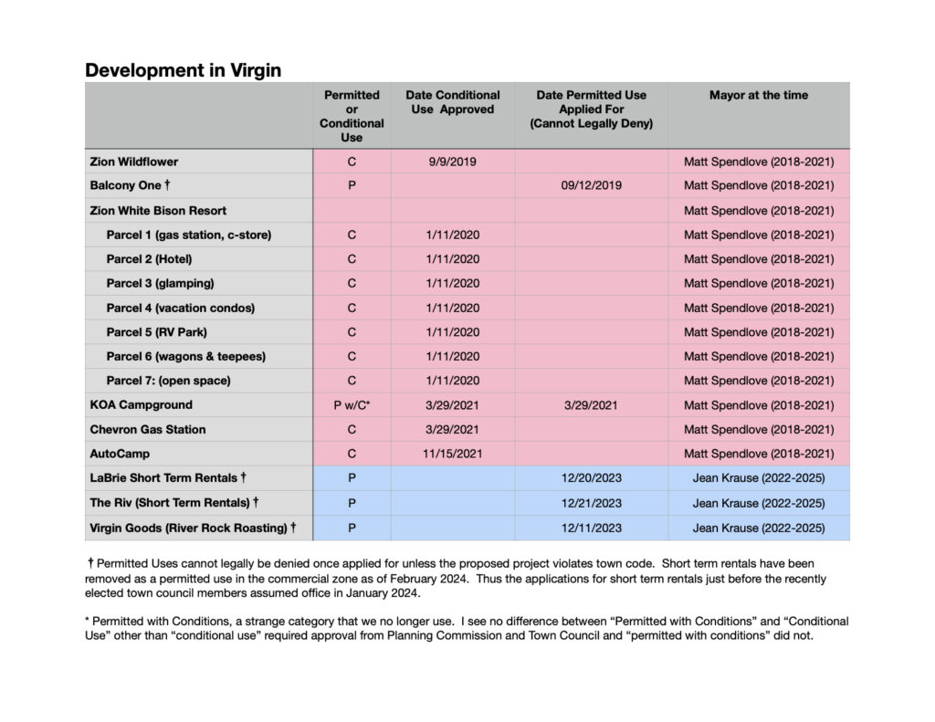 The chart below is to clarify for readers exactly when each commercial development project in Virgin was approved.
